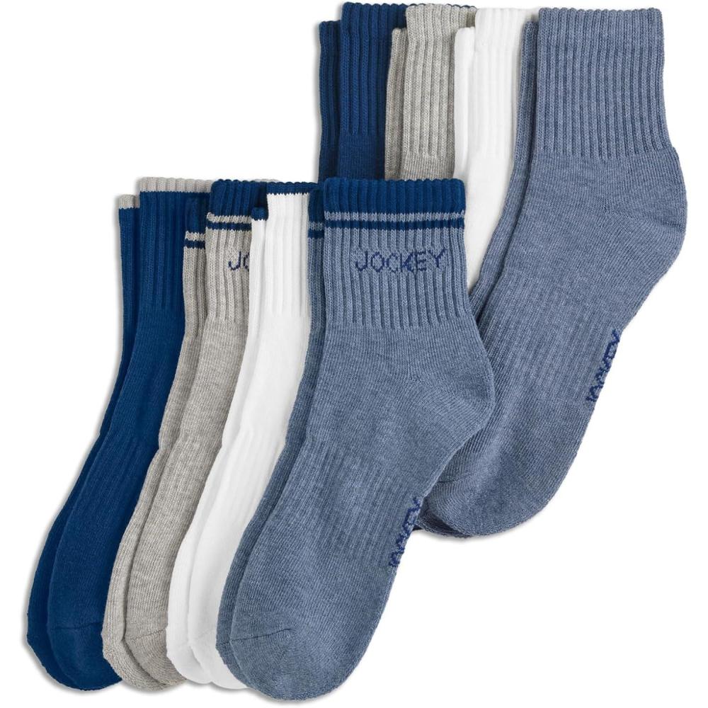 Jockey Men’s Everyday Cotton Blend Quarter Socks (8-Pack)(White/Blue/Grey/Navy)