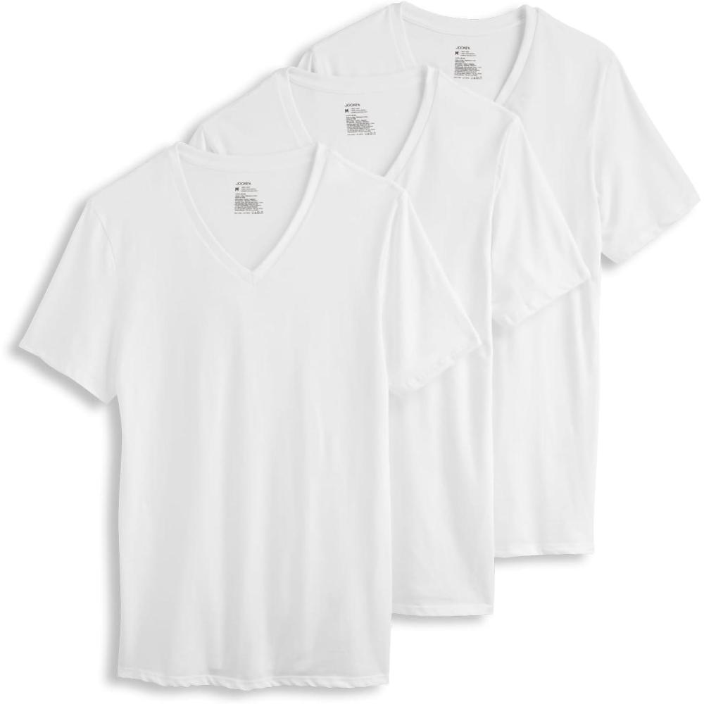 Jockey Men’s Undershirt Cotton Stretch V-Neck Undershirt – 3 Pack(Diamond White)