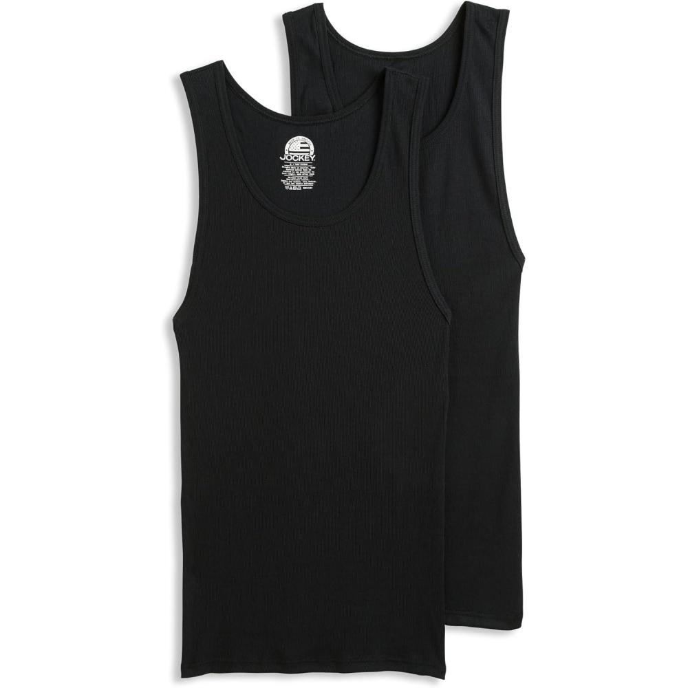 Jockey Men’s Undershirt Made in America 100% Cotton Tank – 2 Pack(Black)