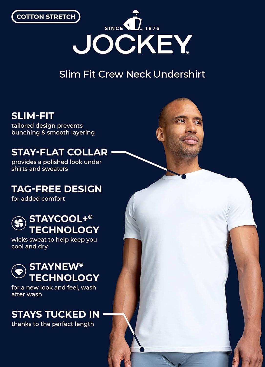 Jockey Men’s Undershirt Slim Fit Cotton Stretch Crew Neck Undershirt – 2 Pack(White)