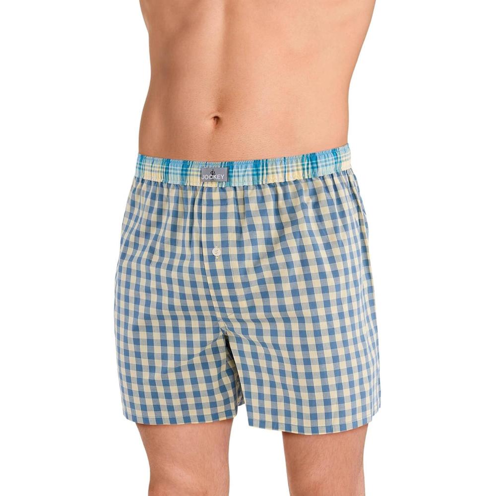 Jockey Men’s Underwear 100% Cotton Woven 5″ Boxer(Fresh Yellow Gingham)