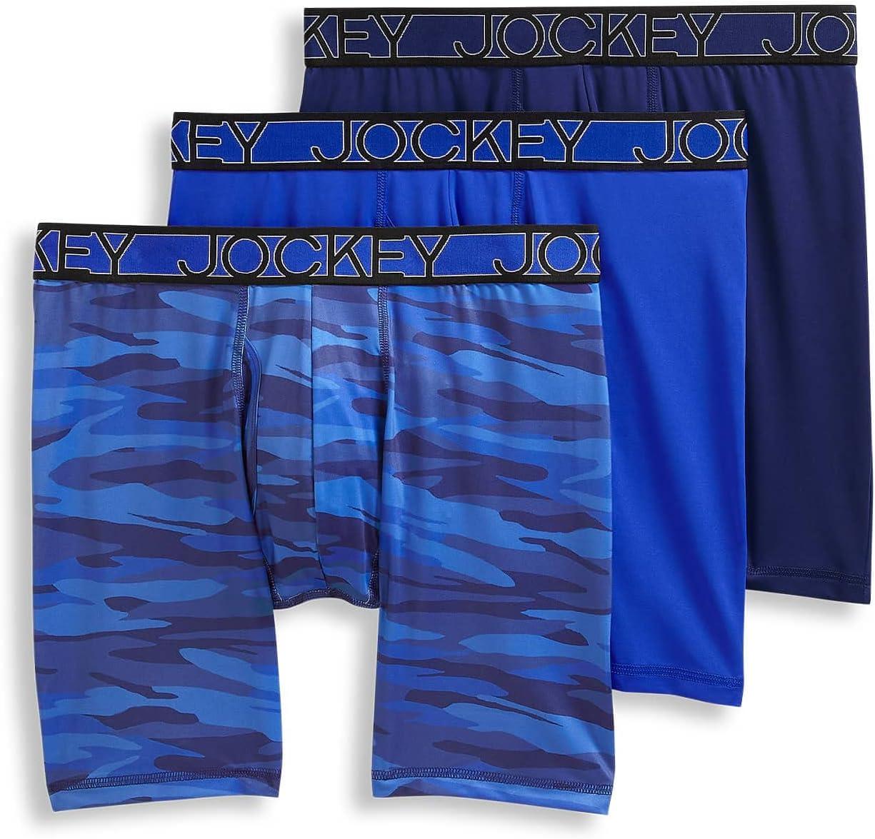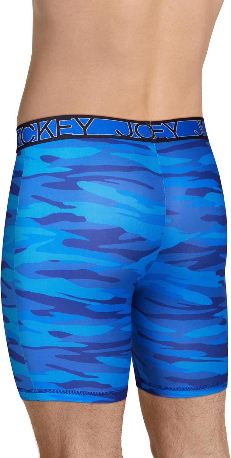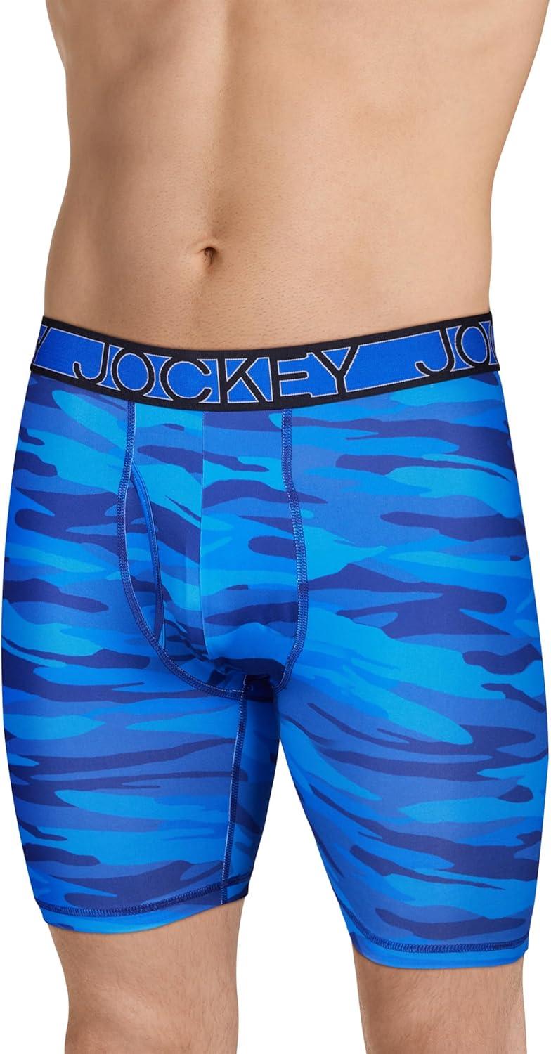 Jockey Men’s Underwear Active Microfiber 9″ Long Leg Boxer Brief – 3 Pack(Majestic Blue/Oceanic Camo/Brilliant Blue)
