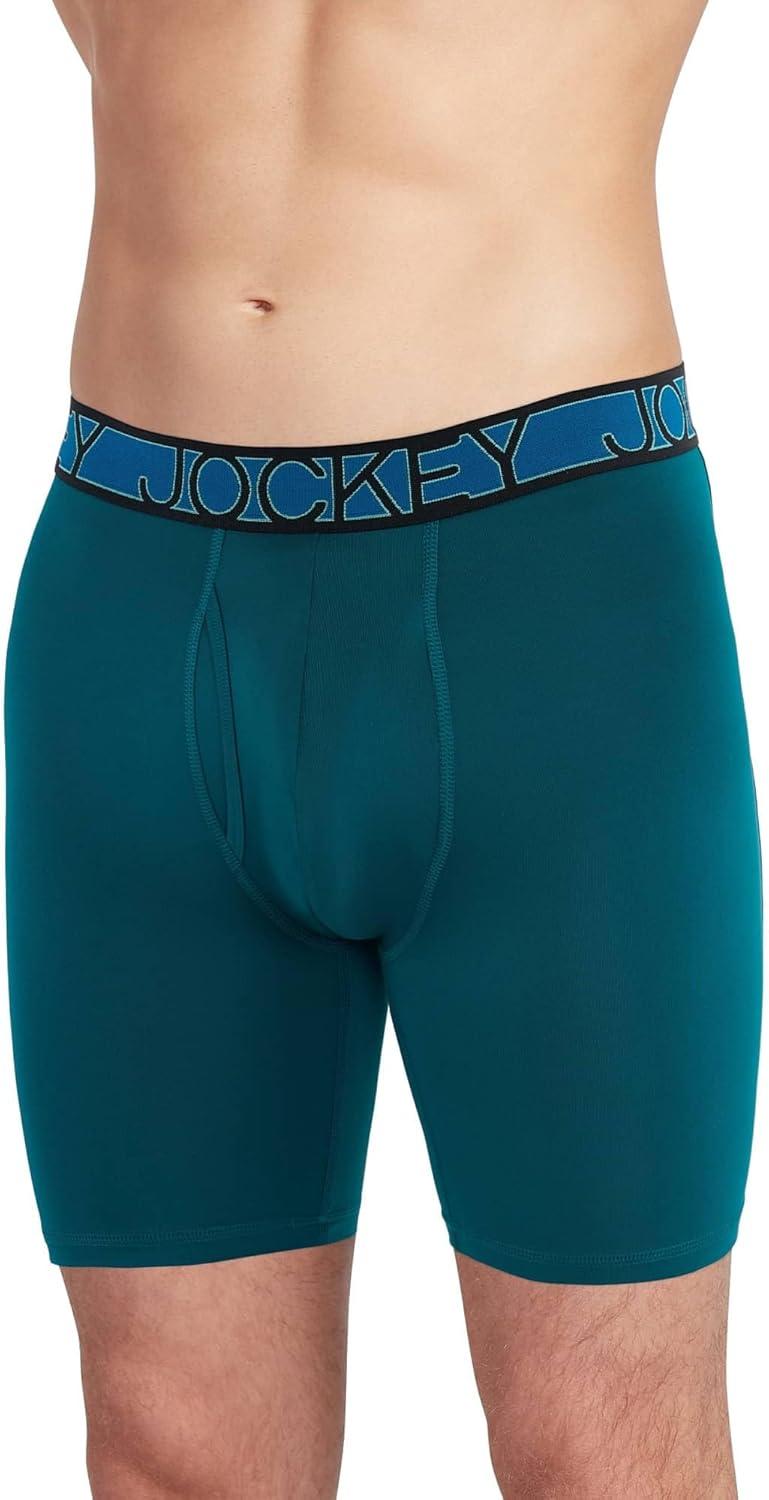 Jockey Men’s Underwear Active Microfiber 9″ Long Leg Boxer Brief – 3 Pack(Teal Breeze/Jagged Cool Ombre/Deep Lagoon)