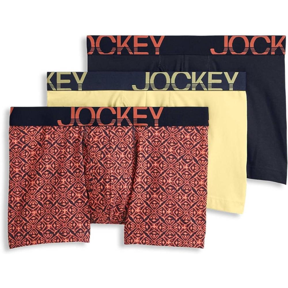 Jockey Men’s Underwear ActiveStretch 4″ Boxer Brief – 3 Pack(Light Yellow/Tropical Burst/True Navy)
