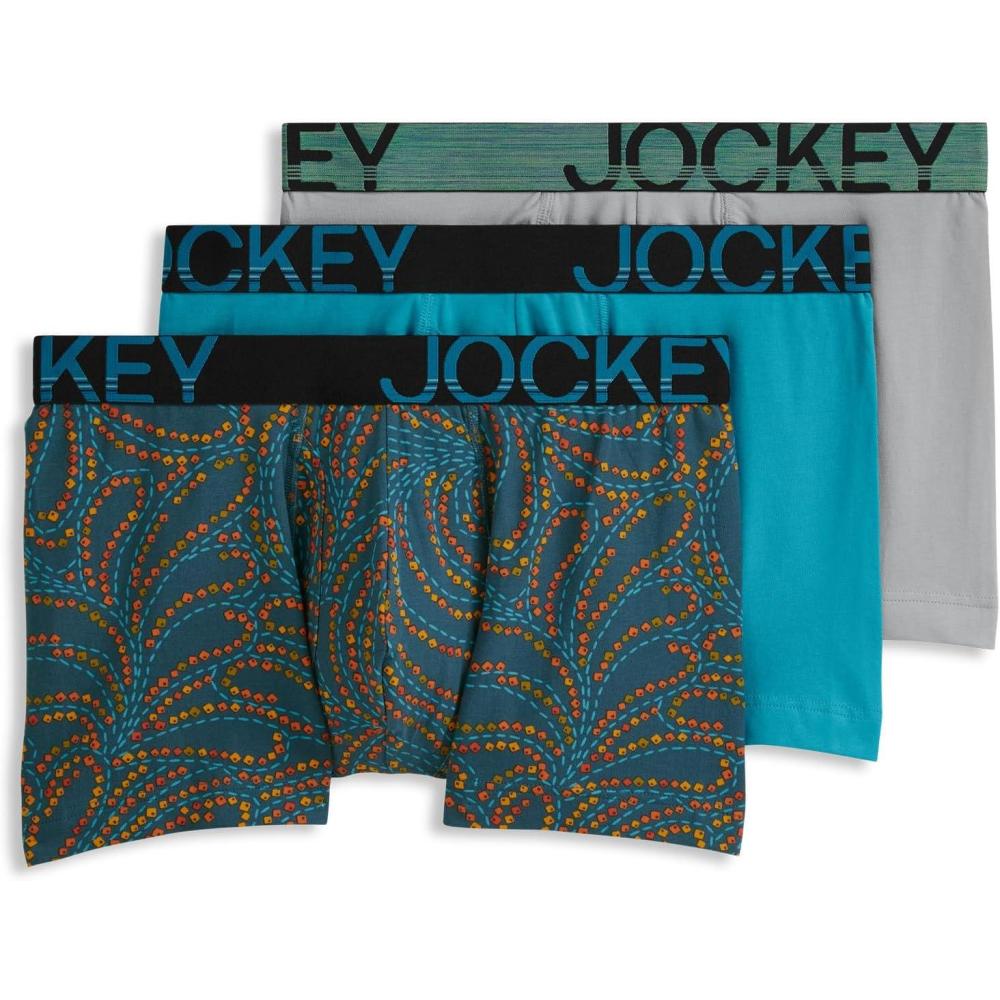Jockey Men’s Underwear ActiveStretch 4″ Boxer Brief – 3 Pack(Ocean Surf)