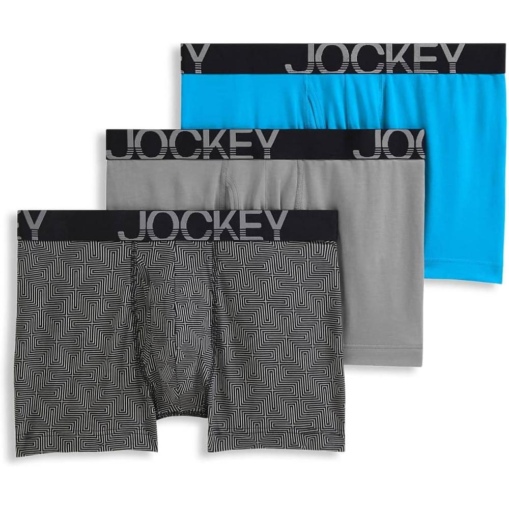 Jockey Men’s Underwear ActiveStretch 4″ Boxer Brief – 3 Pack(Pebble/Z Stripe/Extra Turquoise)