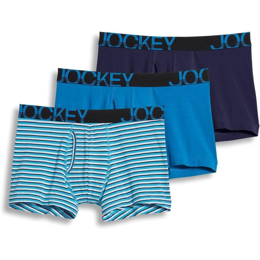 Jockey Men’s Underwear ActiveStretch 4″ Boxer Brief – 3 Pack(True Navy/White & Blue Stripe/Turquoise)