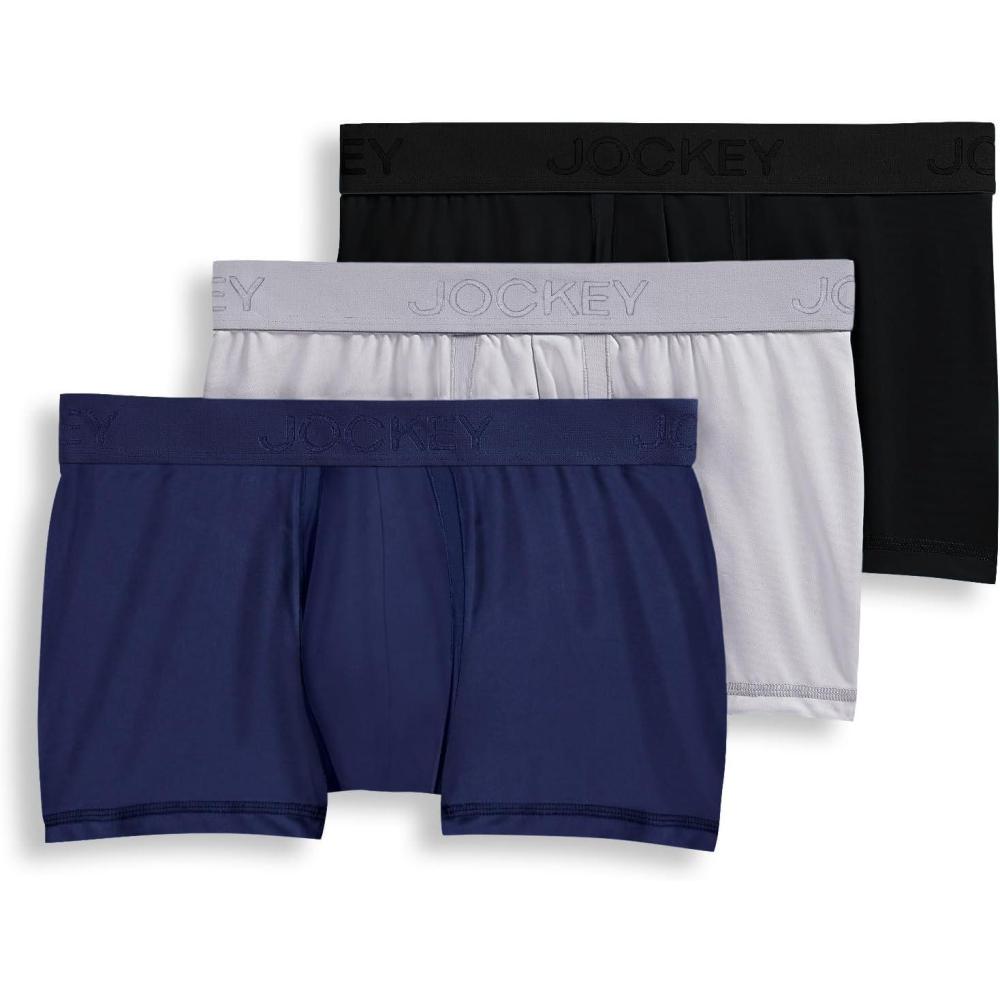 Jockey Men’s Underwear Chafe Proof Pouch Cotton Stretch 3″ Trunk – 3 Pack(Just Past Midnight/Mid Grey/Black)