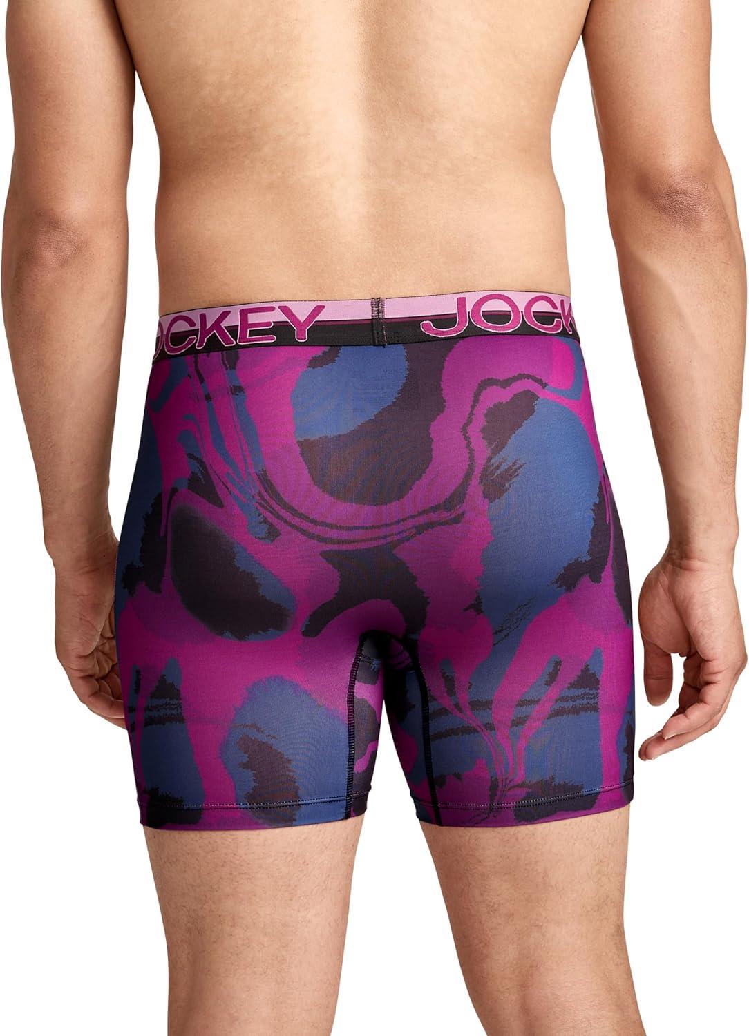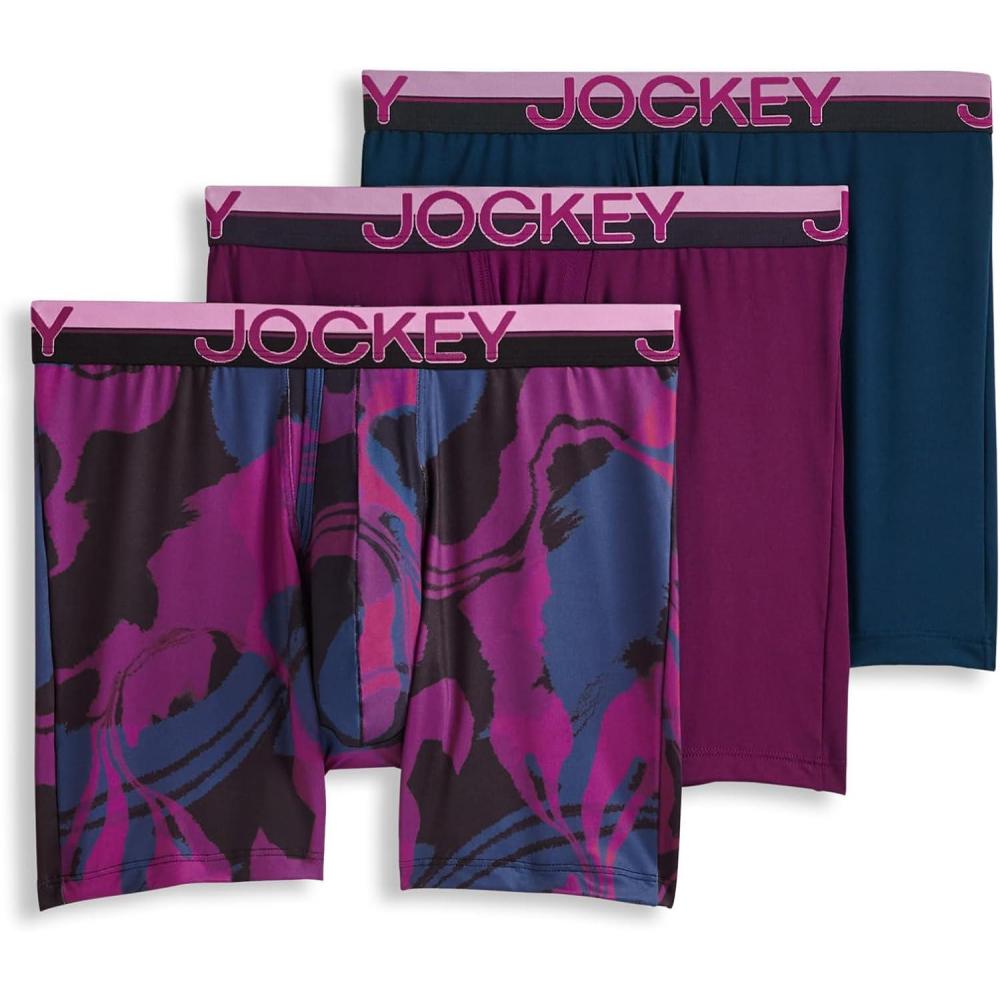 Jockey Men’s Underwear Infinite Cool Microfiber Stretch 6″ Boxer Brief – 3 Pack(Plum Marble)