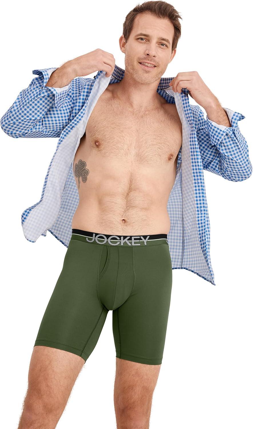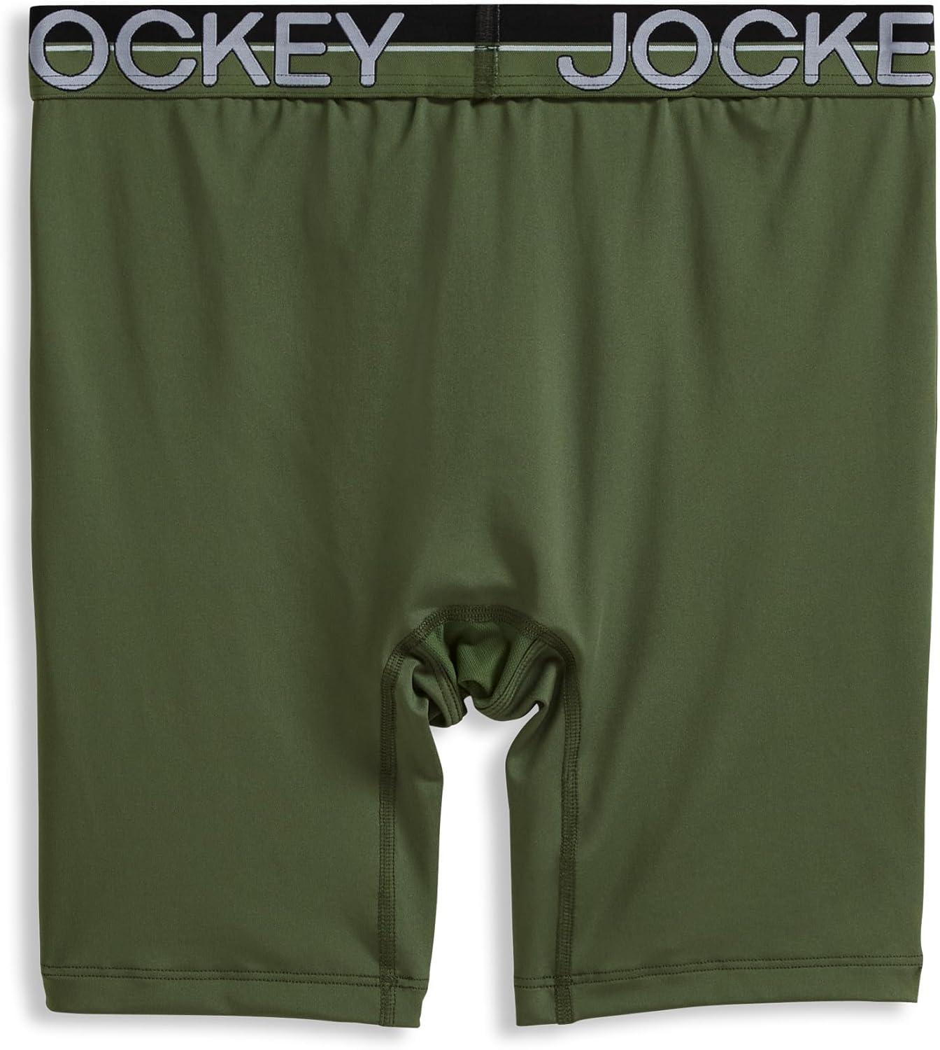 Jockey Men’s Underwear Infinite Cool Microfiber Stretch 8″ Long Leg Boxer Brief – 3 Pack(Military Green/Battleship Grey/Black)