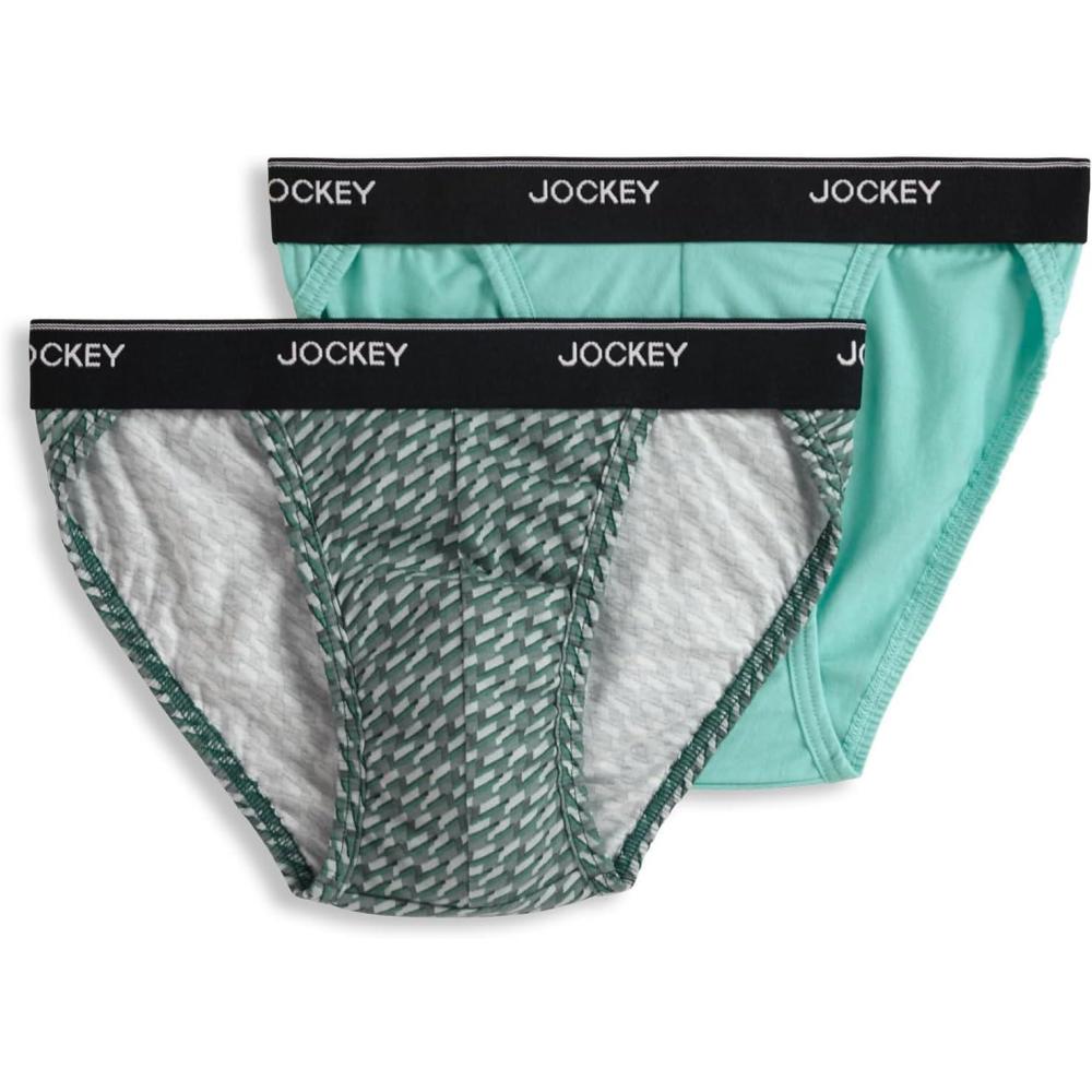 Jockey Men’s Underwear Men’s Elance String Bikini – 2 Pack(Green Duet Geo/Opulent Jade)