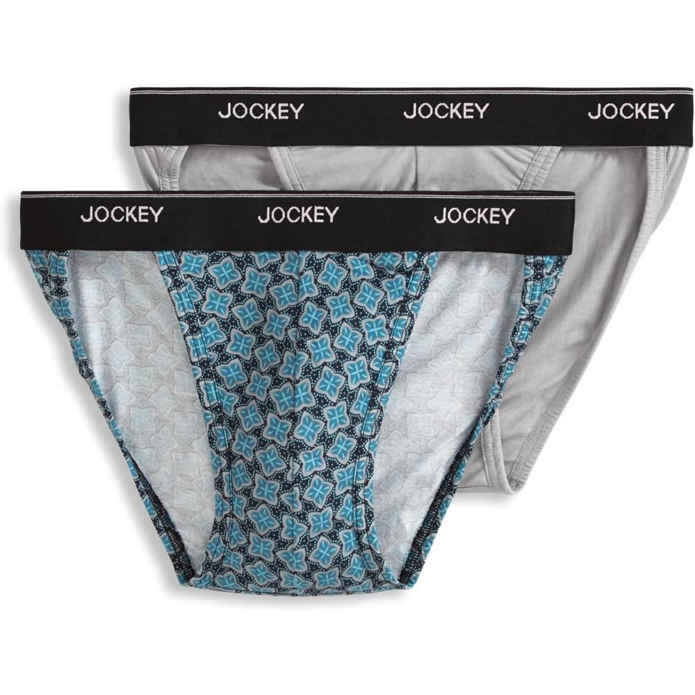 Jockey Men’s Underwear Men’s Elance String Bikini – 2 Pack(Typical Tile Dot/Solid Grey)