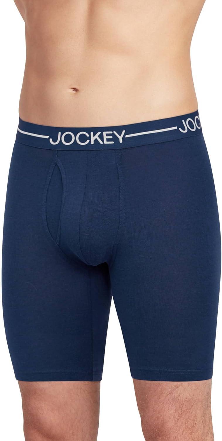 Jockey Men’s Underwear Organic Cotton Stretch 9.5″ Long Leg Boxer Brief – 3 Pack(Lake Sky/Tornado Blue/Ink Well)