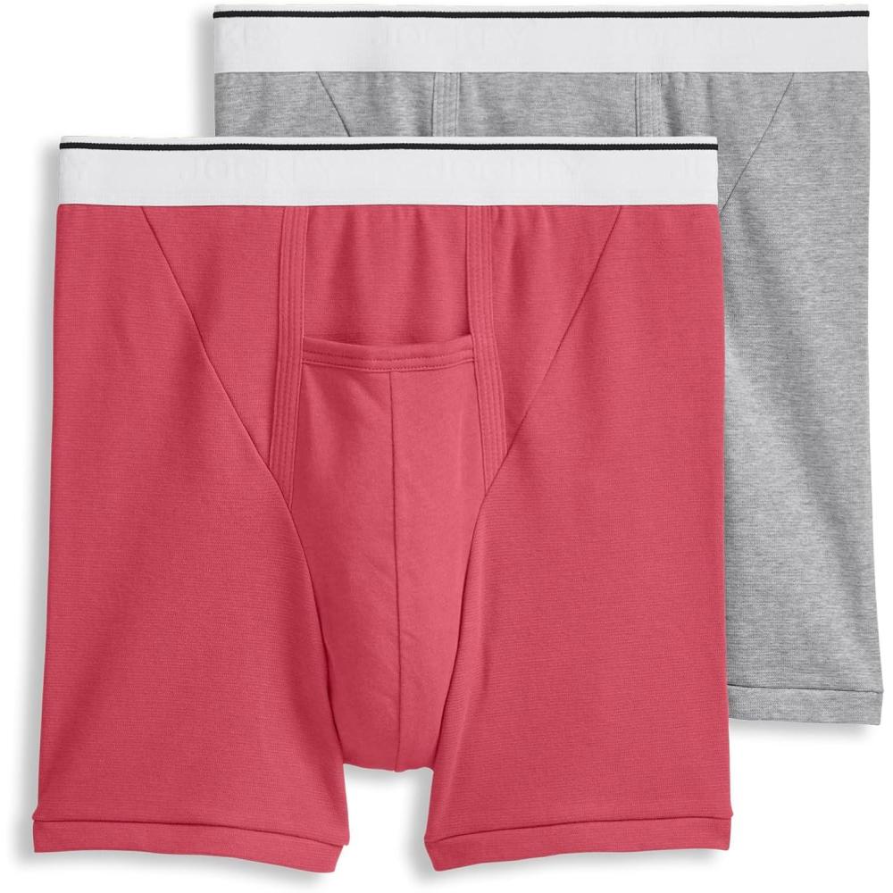 Jockey Men’s Underwear Pouch 5″ Boxer Brief – 2 Pack(Grey Heather/Malibu Red)