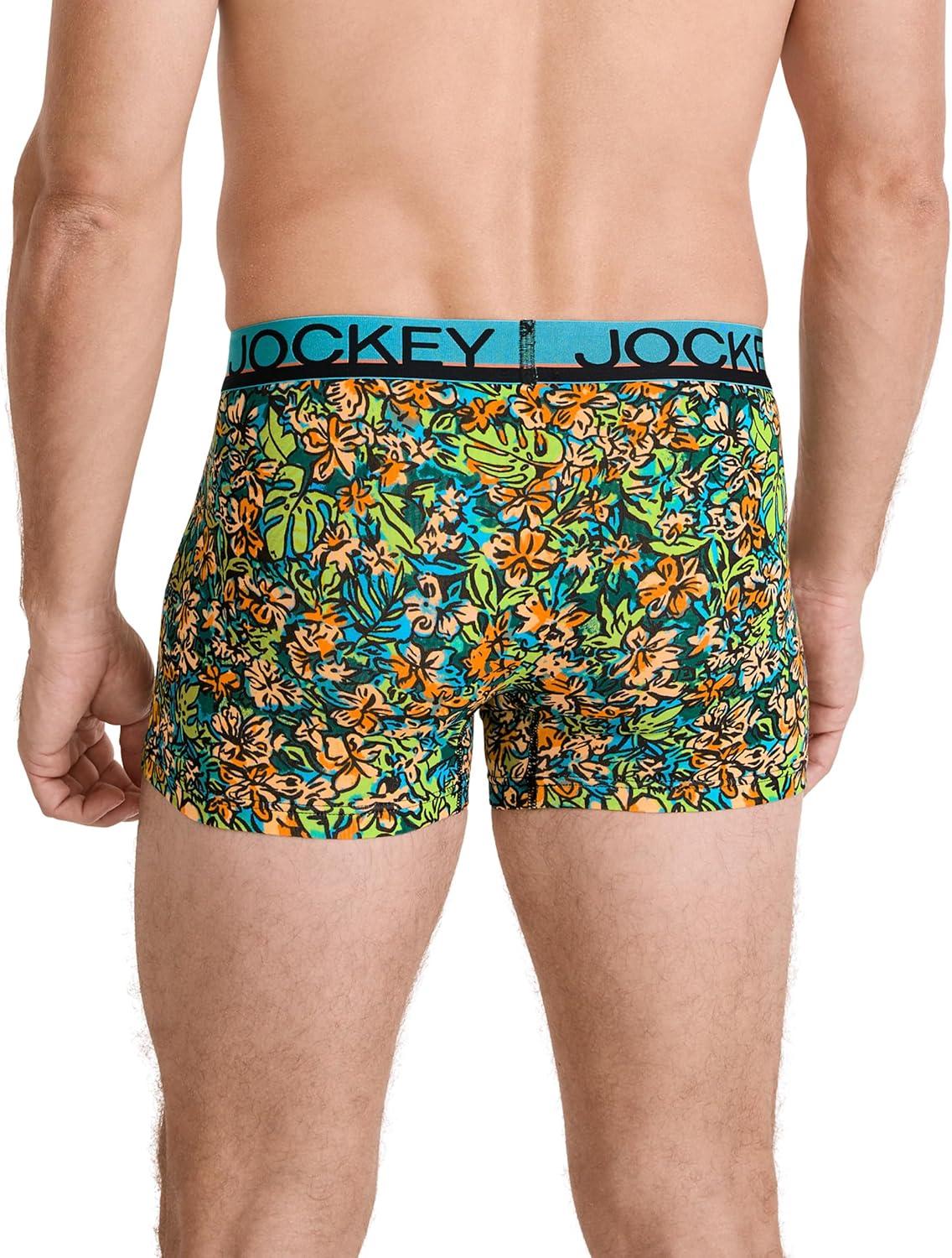 Jockey Men’s Underwear True Style 4″ Trunk – 3 Pack(Bright Tropics/Black/Shoreline Stripe)