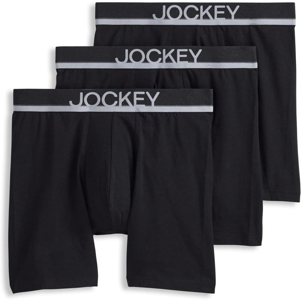 Jockey Men’s Underwear True Style 6″ Boxer Brief – 3 Pack(Black)
