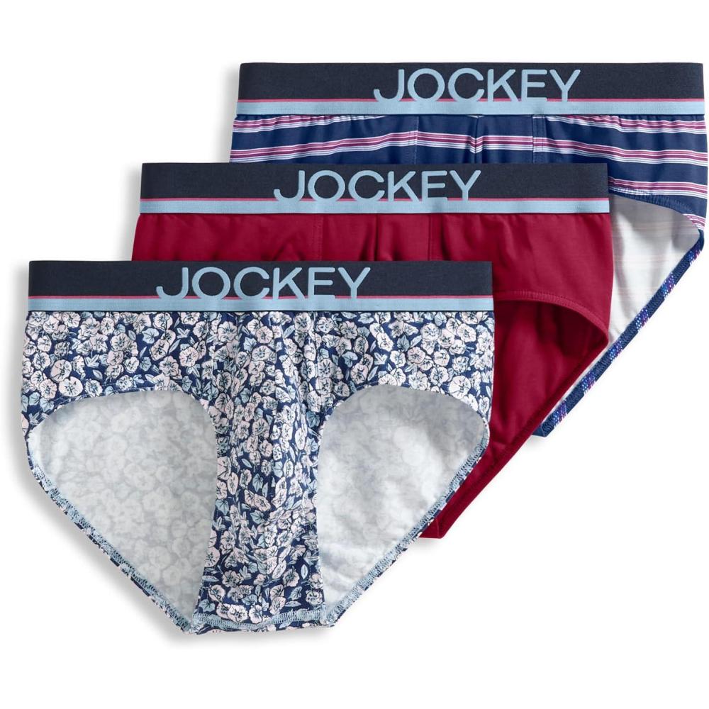 Jockey Men’s Underwear True Style Brief – 3 Pack(Funky Marina Floral/Red Pear/Soft Blue Fall Stripe)