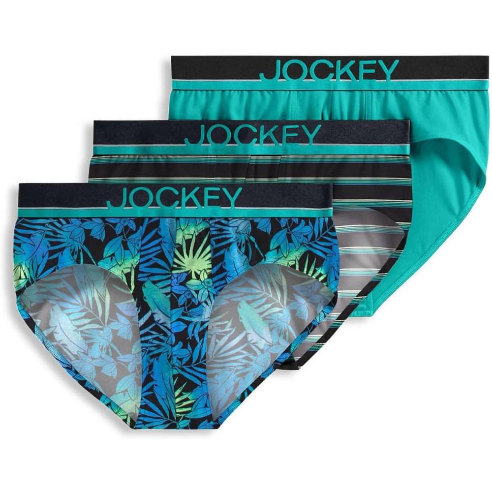 Jockey Men’s Underwear True Style Brief – 3 Pack(Ombre Tropics/Teal Breeze/Vivid Stripe)