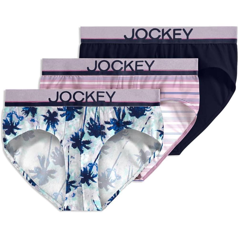 Jockey Men’s Underwear True Style Brief – 3 Pack(Teal Ocean Palms/True Navy/Vacation Stripe)