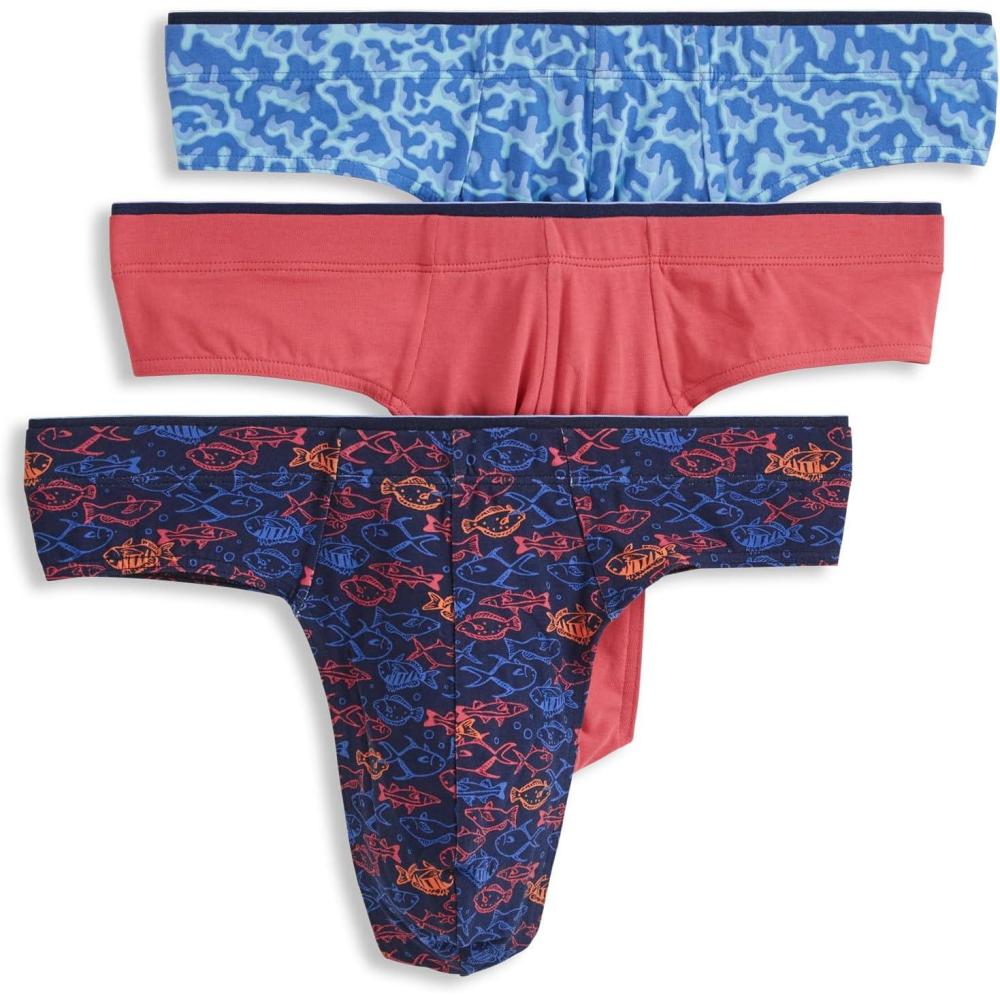 Jockey Men’s Underwear True Style Thong – 3 Pack(Something Fishy/Malibu Red/Ocean Coral)