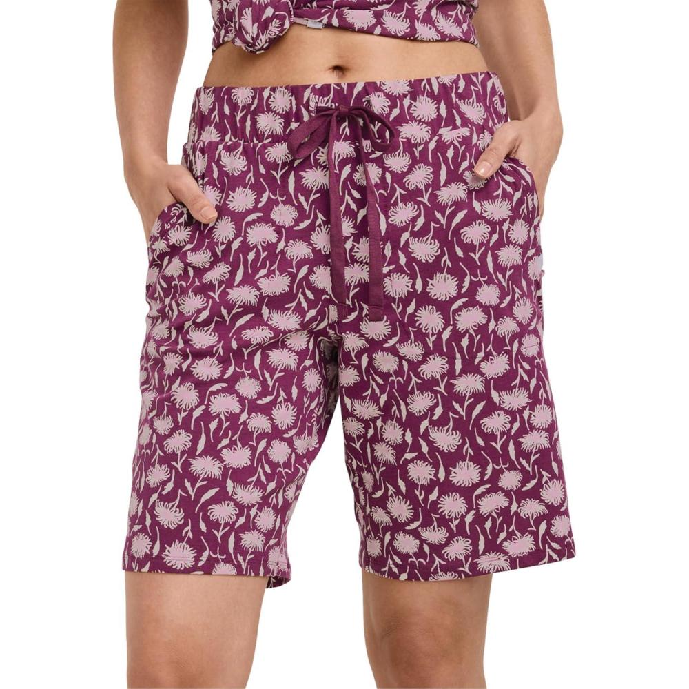 Jockey Women’s Sleepwear Organic Cotton Stretch Bermuda Short(Frayed Plum Floral)