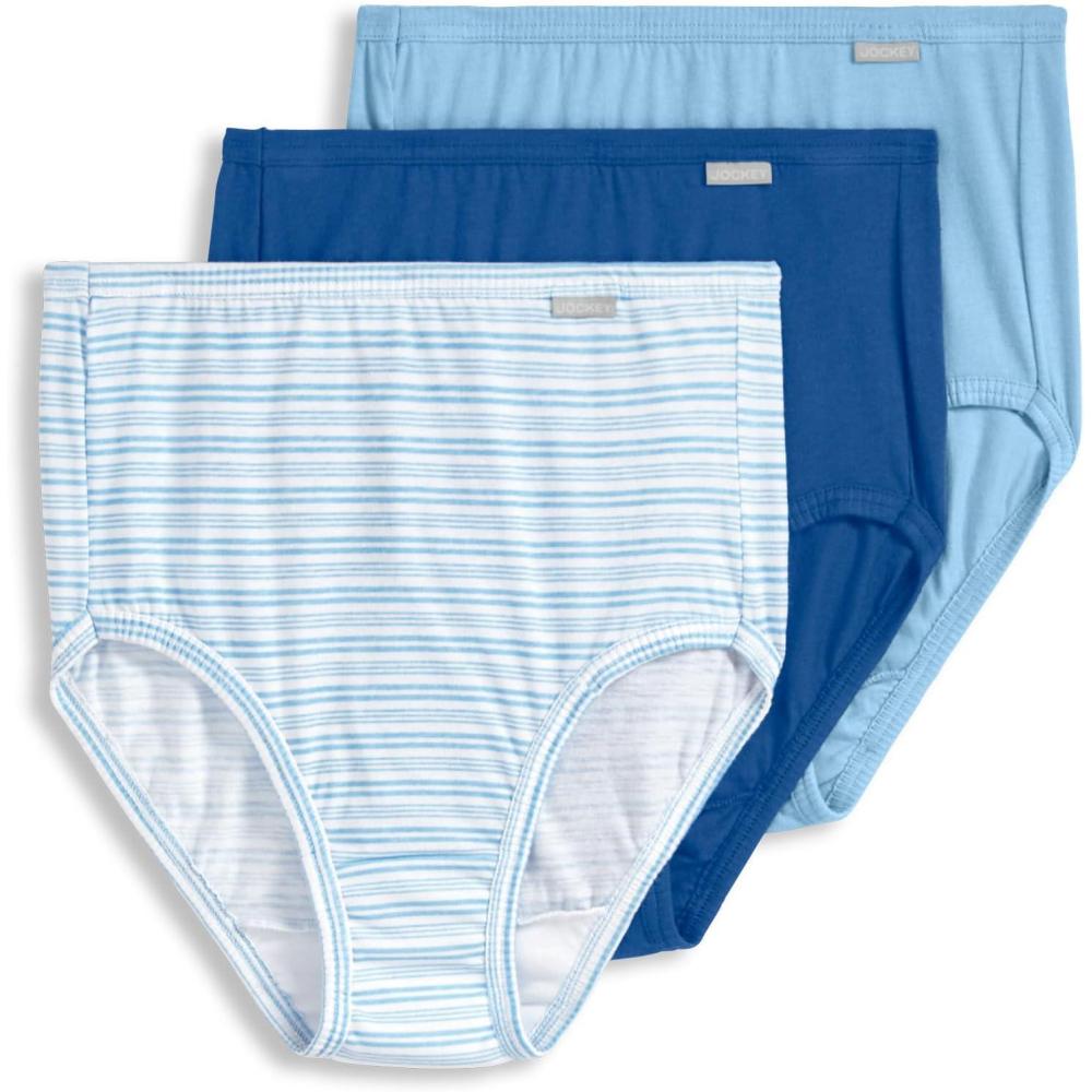 Jockey Women’s Underwear Elance Brief – 3 Pack(Blue Stardust/Boardwalk Stripe/Marina Blue)