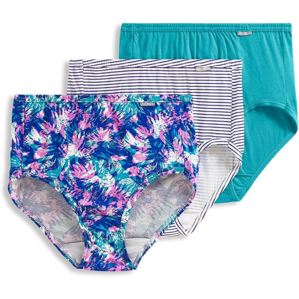 Jockey Women’s Underwear Elance Brief – 3 Pack(Softest Teal/Belvedere Violet Stripe/Tropical Burst)