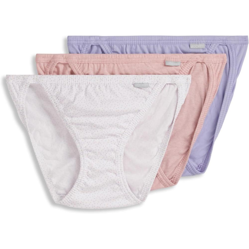 Jockey Women’s Underwear Elance String Bikini – 3 Pack(Violet Veil/Coral Mist Heather/Tango Dot)