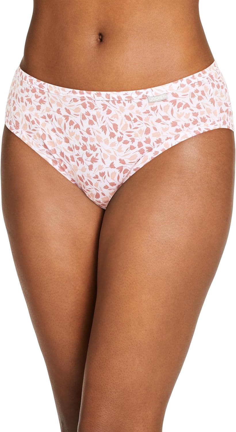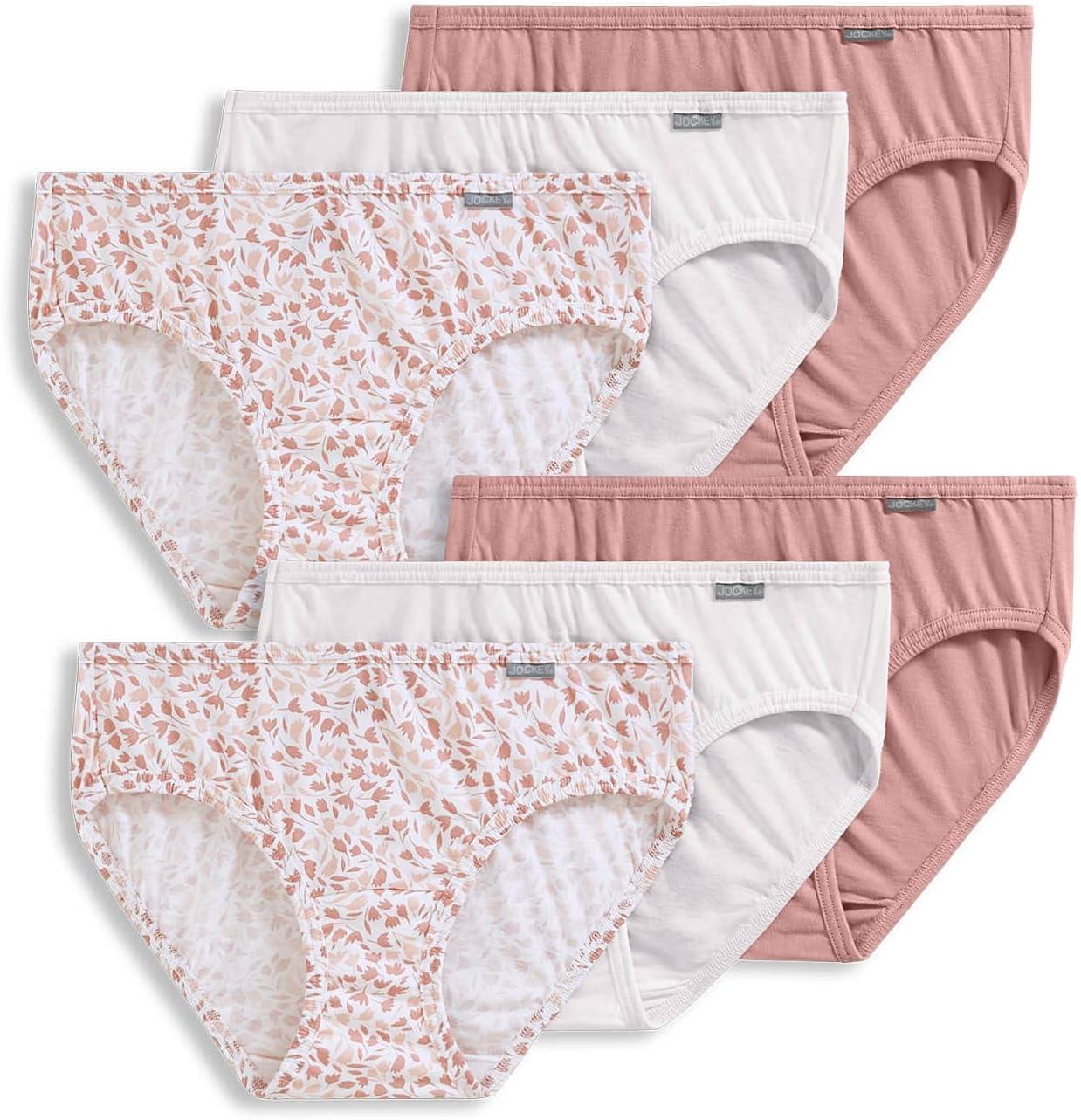 Jockey Women’s Underwear Plus Size Elance Bikini – 6 Pack(Diamond White/Prim Floral/Earth Rose)