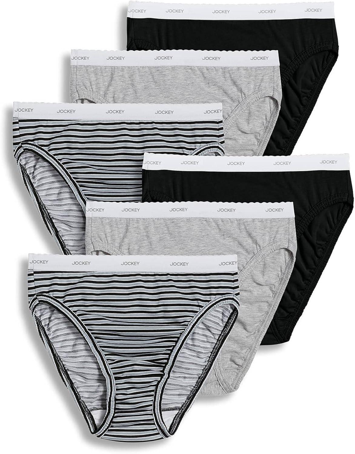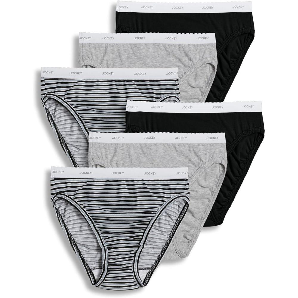 Jockey Women’s Underwear Plus Size Elance French Cut – 6 Pack(Grey Heather/Simple Stripe/Black)